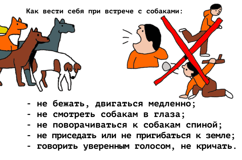 Памятки. Как действовать при встречи с бездомными собаками.
