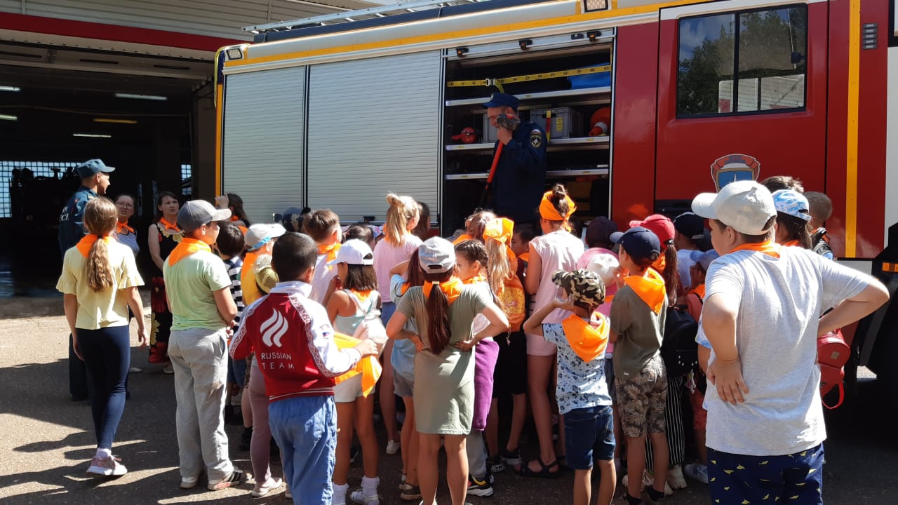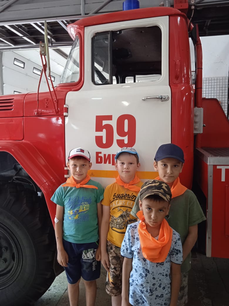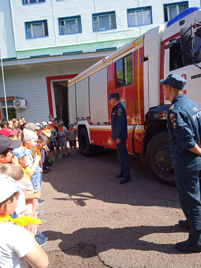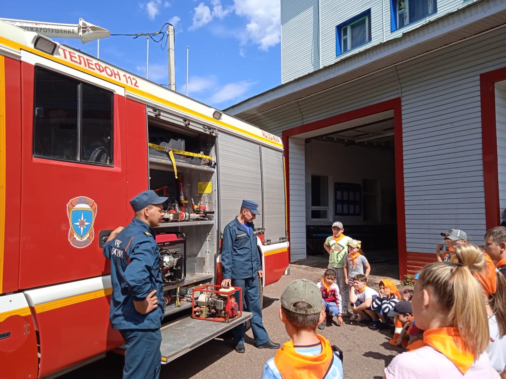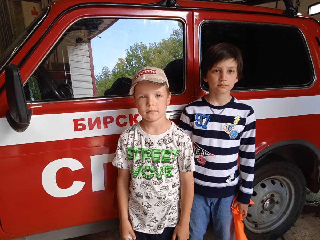 Экскурсия в Пожарную часть. Экскурсию провели пожарные Барбашов Вадим Сергеевич и Хайфуллин Руслан Ильдарович.
