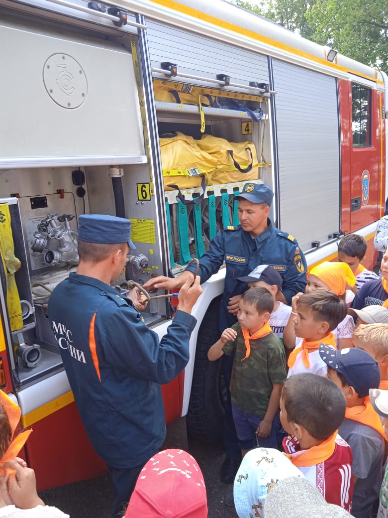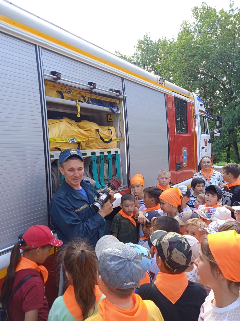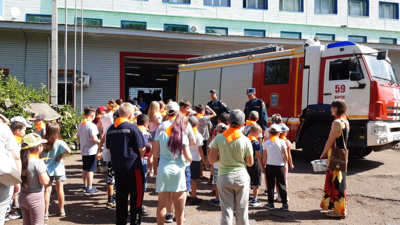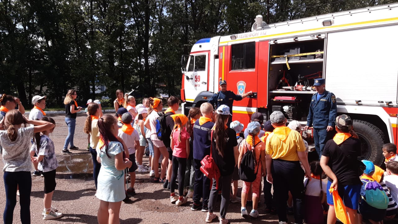 Экскурсия в Пожарную часть. Экскурсию провели пожарные Барбашов Вадим Сергеевич и Хайфуллин Руслан Ильдарович.